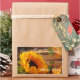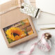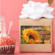 Un beau décor de campagne traditionnel avec un thème de la récolte d'automne dorée incluant un tournesol, feuilles et feuillage d'automne, papillon orange et arrière - plan de bois rustique. Dans des teintes dorées profondes, magnifiques, automnales, orangées, vertes et marron.
