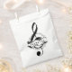 Un sac de faveur pour les musicalement inclinés, avec une clef triphe et un motif de notes musicales répétitives circulaires. Le texte dit "merci".