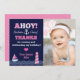 Ce suffisance-dans-le-vide adorable vous remercie de noter des matchs invitation nautique de fête d'anniversaire de notre fille partie de voile populaire. Ceci vous remercient de noter peut être personnalisé avec la photo de votre enfant et les mots de coutume. C'est une manière mignonne pour qu'un enfant en bas âge dise le Merci pour party des invités !