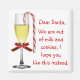 Amusant petit aimant de Noël, avec une note à Père Noël. Un verre de vin à la décoration festive, avec arc rouge sur la tige et un sucre de canne accroché au bord décore cet aimant de vacances amusant. Une jolie note à Père Noël dit : "Cher Père Noël, Nous sommes à court de lait et de biscuits, j'espère que vous l'aimez à la place. Personnalisez si vous voulez que le texte dise autre chose.