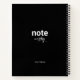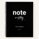 Note personnalisée digne carnet en spirale. Noir avec texte brut et texte de script.