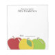 Le bloc-notes personnalisé de l'enseignant a accentué avec un trio coloré de pommes. Espace d'écriture et texte modifiable.