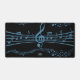 Des notes de musique bleue se répandent à travers la surface de ce tapis de bureau unique. Les notes sont placées sur un arrière - plan noir dramatique. Votre monogramme de deux lettres est également en bleu au fond du centre.