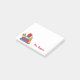 Petites notes de post-it mignonnes pour des professeurs de toute catégorie. Elle comporte une pile de livres d'école dans en bas à gauche le faisant le coin avec une pomme sur le dessus. Une tortue mignonne de bande dessinée colle sa tête autour des livres. Vous customisez le nom au fond.
