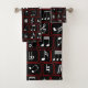 Ce motif géométrique de notes musicales de concepteur comporte les notes blanches de musique emballées dans des rectangles et des carrés avec les frontières rouges sur un arrière - plan noir. Une grande conception pour tout musicien ou amant de la musique.