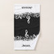 Perfectionnez pour le mélomane ou le musicien avec une conception moderne attirante comportant des notes musicales brouillées blanches et une grande clef triple sur un arrière - plan noir classique. La conception inclut le texte personnalisable pour un nom ou le texte de votre choix pour créer un cadeau unique et personnalisé de musique.