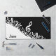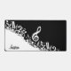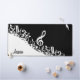 Une gamme de variations de couleurs disponibles en magasin et nous pouvons créer ce design dans n'importe quelle combinaison de couleurs, il suffit de nous contacter via notre boutique GiftsBonanza avec votre demande avant l'achat et nous serons heureux de vous aider. Parfait pour les mélomanes ou les musiciens avec un design moderne accrocheur avec des notes musicales mélangées en blanc et une grande clef triplée sur un arrière - plan noir classique. Le design comprend du texte personnalisable pour un nom ou un texte de votre choix pour créer un cadeau musical unique et personnalisé. Série promotionnelle : pgb1503
