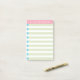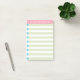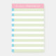 Ce modèle Post-it® Notes 4 x 6 pouces personnalisable a des rayures vertes avec des cases bleues cochées surmontées et une bannière rose, profitez!