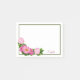 Cette décoration florale est composée d'un ensemble de pivoines dans des tons roses variés. Décoré de feuillage vert, ce dessin se trouve dans le coin inférieur gauche du Post-it®note. La bordure verte finit la conception, que vous pouvez customiser avec un nom ou laisser vide.