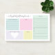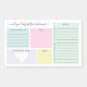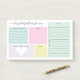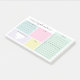 Notes postales pratiques pour votre planification personnelle quotidienne avec des catégories pastel. Écrivez des choses pour être reconnaissant, une affirmation pour la journée, noter vos repas, et ajouter une liste de choses à faire. Il y a aussi de la place pour ajouter des notes ou des choses à retenir. Personnalisez avec votre nom dans un joli script.