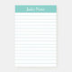 Classic Aqua Lined Notes personnalisées Ces Notes Post-it personnalisables sont simples pour une utilisation quotidienne ou l'envoi d'une note formelle à quelqu'un de votre bureau ou bureau. Vous pouvez également choisir une variété de couleurs dans notre boutique pour vos besoins de bureau à domicile. Personnalisez ces Notes de Post-it avec votre nom ou donnez comme cadeau et personnaliser avec vos amis ou les noms de famille afin qu'ils puissent les utiliser à leur domicile ou au bureau.