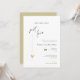 This minimal and elegant wedding invitation is perfect for a modern wedding. Design features an handwritten font and modern minimalist design with a golden heart. You can change the names, wedding location and date, and other details, just click «Personalize».