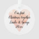 Notre 1er Noël ensemble romantique arbre de Noël Ornement avec coeur aquarelle. Décorations de vacances personnalisées pour le premier Noël du couple ensemble. Design élégant avec corail rose aquarelle symbole d'amour coeur. Beau modèle de typographie manuscrite de script de brosse. Ajoutez vos propres noms, date et salutation. Téléchargez votre propre photo sur le dos en option. Idée cadeau de saké mignonne pour les jeunes mariés, marié et marié, mari et femme, petit ami et petite amie etc.