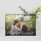 Cette carte merveilleuse avec "Happy Hanoukka !" en caractères blancs et votre nom marié officiel ainsi que l'imprimé de l'année sur le devant et la date et l'endroit où vous avez été marié sur le dos est parfaite pour tout couple célébrant leur 1ère Hanoukka comme un couple marié. Tout le monde sera si excité de voir une photo de votre grand jour - surtout ceux qui ne pourraient pas être avec vous pour célébrer! Pour voir à quoi ressembleront vos cartes, sélectionnez Personnaliser ce modèle, téléchargez une photo de mariage préférée et tapez vos noms. En quelques secondes vous verrez de belles cartes !