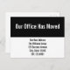 Cette carte postale en noir et blanc comporte deux champs. Ensemble, le champ noir dit "Notre bureau a déménagé". Utilisez le champ blanc pour customiser votre carte postale avec le nom, la nouvelle adresse et le numéro de téléphone de votre société.