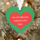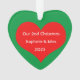 Noms personnalisés et imprimés avec le design de coeur rouge mignon en arrière - plan vert massif. N'hésitez pas à vous customiser en ajoutant vos propres textes, noms ou photos. Vous pouvez facilement ajouter votre photo à l'arrière de l'ornement! La couleur de l'arrière - plan peut également être modifiée à votre gré.