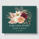 Capturez les souvenirs sincères de votre jour de mariage avec ce livre d'or élégant de couleur vert émeraude intitulé Notre histoire d'amour. Avec un bouquet floral luxuriant de fleurs en bourgeon bordeaux, rose et pêche, il est parfait pour les mariages d'automne et les thèmes romantiques aux tons de joaillerie. Personnalisez-le avec vos noms et la date pour créer un souvenir qui contient les vœux chaleureux et l'amour de vos invités. Correspond à la collection de mariage Rustique Emeraude et Florale Bordeaux pour une célébration magnifiquement coordonnée.