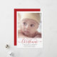Un design minimaliste simple pour cette carte de faire-part de naissance de vacances. Le design comprend une grande photo avec Notre petit Noël Joyeux en typographie verte. Personnalisez avec le nom, la date de naissance, les statistiques de naissance et les noms des parents. L'envers est coordonné en rouge
