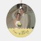 Cet ornement élégant fait un grand souvenir pour un ménage marié. L'image de mariage a un bord de feston sur le fond et elle lit "notre mariage" sur une police de fantaisie. Ajoutez la date de mariage et les noms de la jeune mariée et du marié sur le dos.