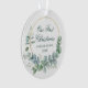 Élégance moderne Notre première aquarelle de Noël Eucalyptus Feuilles Verdure, ornement Gold Circle - Script vert