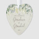 Des neiges peintes à la main et des tiges d'eucalyptus forment une bordure en haut de cet ornement en forme de coeur. Tout le texte est entièrement modifiable de sorte que vous pouvez facilement modifier le libellé et modifier le style/la couleur/la taille/le placement de la police. Remplacez la photo modèle au dos par la vôtre.