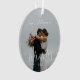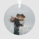 Un ornement spécial pour célébrer votre premier Noël en tant que Monsieur et Madame Un design simple et élégant ce ornement double face présente votre photo mariage préférée avec Notre première année en tant que Monsieur et Madame avec l'année en cours dans une typographie blanche moderne.