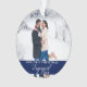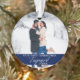 Notre premier Noël Engaged Couple Photo Blue Ornament avec Snowflakes retour.