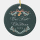 Célébrez votre première saison des fêtes en tant que couple marié avec cet élégant ornement de photo «Notre premier Noël». Avec une écriture gracieuse et des embellissements aquarelles festifs comme des branches de pin, du houx, des cloches dorées et un nœud classique, ce design sera un souvenir parfait de votre premier Noël en tant que jeunes mariés.