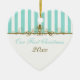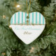 Cet ornement à rayures bleu et blanc Aqua a des détails de défilement doré et est customisé comme un premier Noël ensemble gardien. Il correspond à la collection mariage montrée ci-dessous, et ferait un bon souvenir de votre journée spéciale, ou un grand cadeau pour les jeunes mariés.
