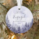 Célébrez votre premier Noël de fiançailles avec cet élégant ornement de Noël de forêt de pins violets. Personnalisez avec vos propres détails et photo spéciale au verso. Conçu par Thisisnotme©