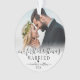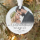 Personnalisé Notre Premier Ornement Photo Mariage Marié De Noël. Célébrez votre première saison de vacances comme de jeunes mariés avec cet élégant ornement personnalisé, parfait pour capturer la joie de votre nouvelle vie ensemble. L'avant dispose d'un espace pour une photo chère de vous deux, avec l'expression "Notre premier Noël Marié" en belle calligraphie script, avec vos noms et année mariage pour une touche personnalisée. L'arrière offre de la place pour une deuxième photo, idéale pour présenter un moment mariage ou la mémoire préférée, accompagné par "Joyeux Noël" dans le même script délicat, avec vos noms et l'année affichée plus petit en bas. Les accents de coeur noir apportent une touche subtile et romantique, tandis qu'un doux ombre blanc au fond de chaque photo crée une transition fluide et raffinée. Vous pouvez customiser la police noire et les couleurs du coeur pour qu'elles correspondent à votre style. Cet ornement de conservation est parfait pour célébrer votre premier Noël en couple marié et fait un ajout significatif à votre décor de vacances ou un cadeau réfléchi pour les jeunes mariés.