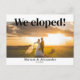 Surprenez vos proches avec les nouvelles passionnantes de votre fête intime en utilisant la Photo "We Eloped" Mariage Carte postale! Parfait pour partager une photo de votre journée spéciale, ce design moderne et élégant vous permet de vous annoncer votre histoire d'amour avec simplicité et grâce. Montrez votre photo de luxe préférée comme la caractéristique principale de cette carte postale élégante. Ajoutez facilement vos détails - noms, date de sortie, emplacement et un court message personnel pour en faire le vôtre. Cette carte postale est une excellente idée grâce à : *Partagez les nouvelles de votre logement privé avec vos amis et votre famille. **Célébrer votre union tout en créant un maintien durable.