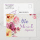 Une carte de faire-part mobile amusante et colorée à envoyer à la famille et aux amis. Doté d'une belle bordure fleurie et de couleurs pastel douces avec typographie script tendance. Un design simple mais élégant. Entrez votre nouvelle adresse et modifiez-la avec un message et vos noms. L'outil de conception vous aidera à changer les polices et les couleurs.