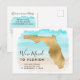 Nous Avons Déplacé Gold Florida Carte Plage Scène Nouvelle Adresse Carte Postale Faire-part... Notre carte postale en mouvement tropical comprend une carte (fausse) en feuille métallique dorée de Floride sur une scène de plage d'aquarelle, indiquant aux destinataires en un coup d'oeil l'emplacement de votre déménagement récent. Le dos de la carte contient tous les nouveaux détails dont votre famille et vos amis auront besoin pour rester en contact. L'exemple de texte sur l'avant et l'arrière est affiché dans un script élégant et sans serif typographie et peut être facilement révisé sur le modèle de personnalisation.