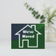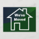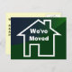 Dessin esquissé d'une maison aux lignes blanches sur un arrière - plan vert foncé. Comprend le texte "We've Moved" (Nous avons déménagé). Facile à customiser - Ajoutez vos détails mobiles au dos de la carte, changez le texte, la police, la taille et la couleur pour convenir à votre faire-part "Nous déménageons" ou, en tant que jeunes mariés se déplaçant dans votre première maison après le mariage. PLUS DE CARTES DE DÉPLACEMENT ET ÉTIQUETTES Encore moins cher si vous achetez avec réduction de volume Remarque et revend pour votre entreprise ou groupe communautaire