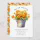 Carte de faire-part mobile rustique avec un seau en argent avec un plante marigold jaune et orange. Retournez notre nouvelle carte d'adresse pour voir un dos floral de coordination pour une touche spéciale.