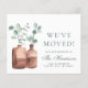 Elegant and budget-friendly new home / change of address moving announcement featuring watercolors of eucalyptus greenery in terracotta vases. On the front, personalize with your family name in a stylish sage green script, the "We've Moved" text and your new address. On the reverse side you can personalize your announcement in details more and include a telephone number and email if desired.
