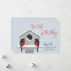 Faites savoir à vos amis et à votre famille que vous avez une nouvelle maison! Ces faire-part fantaisistes de 7 x 5 pouces de vacances avec deux robots modernes se faisant face sur leur perche devant leur maison d'oiseaux qui est recouverte de neige tombant dans l'arrière - plan d'un ciel bleu. Le salut raconte l'histoire, "Nouveau nid pour les fêtes" "Joyeux à tous." Ajoutez simplement votre nom et votre nouvelle adresse.