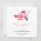 "We've Moved", faire-part mobile ou nouvelle carte d'adresse, avec set à thé à l'aquarelle rose peinte à la main. Conçu et illustré par la designer indépendante Kristine Lee. Pour en savoir plus, visitez notre site Web à www.kristineleedesigns.com