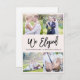 Un faire-part mariage à la mode avec une image de nouveaux mariés et un script de brosse en lettres noires. Le texte peut être personnalisé avec l'image de la mariée et du marié et la couleur du dos.