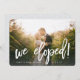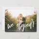 Nos annonces de mariage chic et moderne sont le moyen idéal pour faire connaître à vos amis et votre famille votre évènement, cérémonie secrète ou mariage privé. "We Eloped!" est recouvert d'une brosse de style manuscrit blanc en lettrage sur votre photo préférée à fond saigné horizontal ou orienté paysage. Personnalisez avec vos noms et dates de mariage ainsi qu'un message personnel au verso.