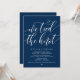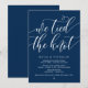 Belle calligraphie moderne simple bleu marine, Annonce de mariage en fuite, Carte d'invitation (Nous avons noué le nœud). C'est parfait pour votre réception de mariage et fête de célébration après le mariage. Ajoutez vos détails dans la police / lettrage correspondant.