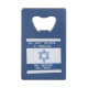 Une pancarte peinte à la main en bleu sur blanc, postée devant un magasin dans la ville israélienne de Rosh Pina. Le panneau a la lecture de texte en anglais, NOUS NE CROYONS PAS EN MIRACLES, NOUS DÉPENDONS D'EUX" sur une représentation du drapeau d'Israël. Le drapeau national d'Israël apparaît également à l'envers. Rosh Pina est situé dans la partie supérieure de la Galilée, sur le versant est du mont Kna'an. L'une des premières colonies sionistes, elle a été fondée en 1882 par trente familles de Roumanie qui souhaitaient commencer à cultiver. Emmer (Triticum dicoccoides), l'ancêtre des types les plus courants de blé cultivé aujourd'hui, a été trouvé sauvage près de Rosh Pina en 1906.