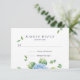 Eucalyptus Hydrangea Garden Wedding Suite Carte RSVP Dites-le haut et simple, "We Do". Un design épuré et élégant comprenant des feuilles d'eucalyptus tombants et des fleurs de jardin d'hydrangée bleu clair. Parfait pour le couple moderne et minimaliste. La palette de couleurs comprend le bleu clair, le bleu marine, l'olive, la sauge, le laurier et l'herbe sauvage. Une superbe suite mariage à thème printemps ou été. PALETTE DE COULEUR Olive, sauge, laurier, herbe sauvage, bleu clair, bleu marine