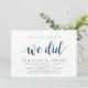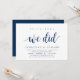 Faire-part moderne rustique, carte d'invitation à thème script bleu marine (avec titre de carte : nous l'avons fait). C'est parfait pour votre réception après le mariage / fête de célébration après le mariage. Ajoutez vos détails dans une police / lettrage noir assorti.