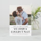 Un faire-part mariage à temps mettant en vedette Nous ne pouvions tout simplement pas attendre la une. Une excellente façon de faire savoir à ceux qui sont chers que vous avez noué le noeud. Le côté arrière permet un message personnalisé à vos amis et à votre famille ou peut être supprimé si vous le souhaitez.