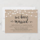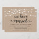 Belles lumières de chaîne de ferme rustique moderne, police de script noir sur fond kraft marron, annonce de mariage en fuite, carte d'invitation (Nous nous sommes mariés). C'est parfait pour votre réception de mariage et la fête de célébration après le mariage. Ajoutez vos détails dans la police / lettrage correspondant.