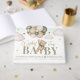 Fêtez l'arrivée prochaine de votre petit avec notre Baby shower d'invités "We Can Bearly Wait"! Ce design charmant présente un adorable ours brun orné d'un arc vert de charme, tenant des ballons bruns et verts. Le décor est plongé dans un décor rêveur de nuages moelleux et d'étoiles scintillantes, faisant de ce livre d'hôtes un souvenir fantasque et réconfortant. Parfait pour capturer des messages et des souvenirs doux de votre journée spéciale! BBS390