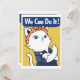 "We Can Do It!" est une affiche en temps de guerre américaine de la Seconde Guerre mondiale produite par J. Howard Miller en 1943 pour Westinghouse Electric, une image inspirante pour remonter le moral des travailleuses. L'affiche a été peu vue pendant la Seconde Guerre mondiale. Elle a été redécouverte au début des années 1980 et largement reproduite sous de nombreuses formes, souvent appelée "We Can Do It!" mais aussi appelée "Rosie le Riveter", d'après la figure emblématique d'une travailleuse de guerre forte. L'image "We Can Do It !" a été utilisée pour promouvoir le féminisme et d'autres questions politiques à partir des années 1980. L'image a fait la couverture du magazine Smithsonian en 1994 et a été façonnée en timbre-poste de première classe aux États-Unis en 1999. Il a été incorporé en 2008 dans le matériel de campagne de plusieurs politiciens américains et a été retravaillé par un artiste en 2010 pour célébrer la première femme à devenir Premier ministre d'Australie. L'affiche est l'une des dix images les plus demandées aux Archives nationales et à l'Administration des documents. Après sa redécouverte, les observateurs ont souvent supposé que l'image était toujours utilisée comme un appel à inciter les travailleuses à rejoindre l'effort de guerre. Cependant, pendant la guerre, l'image était strictement interne à Westinghouse, exposée seulement en février 1943, et n'était pas pour le recrutement, mais pour exhorter les femmes déjà embauchées à travailler plus dur. Les gens ont saisi l'attitude encourageante et le message apparent pour refaçonner l'image sous de nombreuses formes différentes, y compris l'autonomisation, la promotion de campagnes, la publicité et les parodies. Après avoir vu l'image de couverture de Smithsonian en 1994, Geraldine Hoff Doyle a déclaré par erreur qu'elle était le sujet de l'affiche. Doyle pensait qu'elle avait aussi été capturée dans une photo d'une ouvrière d'usine en temps de guerre, et elle a innocemment supposé que cette photo a inspiré l'affiche de Miller. Contredisant son nom de "Rosie le Riveter", Doyle a été honorée par de nombreuses organisations, dont le Michigan Women's Historical Center et le Hall of Fame. Cependant, en 2015, la femme sur la photo de guerre a été identifiée comme Naomi Parker, 20 ans, travaillant au début de 1942 avant que Doyle n'ait obtenu son diplôme d'études secondaires. L'idée de Doyle selon laquelle la photographie a inspiré l'affiche ne peut être prouvée ou infirmée, de sorte que ni Doyle ni Parker ne peuvent être confirmés comme modèle pour "We Can Do It!".