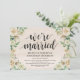 Nous sommes mariés, carte d'invitation de réception de mariage en fuite. Cette carte d'invitation sur le thème du printemps neutre est parfaite pour votre réception de mariage / fête de célébration. Ajoutez vos détails dans une police / lettrage noir assorti.